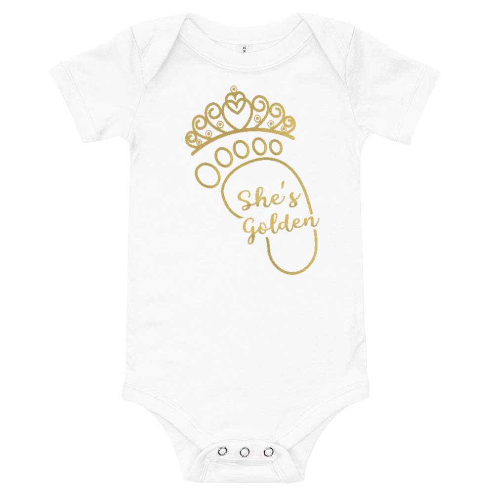 Dress your baby to the nines with this 100% cotton one piece. It has three snap leg closure for easy changing, a comfortable envelope neckline, and a beautiful print that's bound to get the baby all happy and giggling.